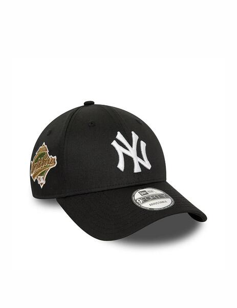 Gorra New Era New York Yankees World Series Patch 9FORTY Negro Logotipo del equipo en la parte delantera Parche de la World Series en lateral derecho Corona estructurada (rígida) Cierre ajustable Visera curvada Logo New Era bordado en lateral izquierdo